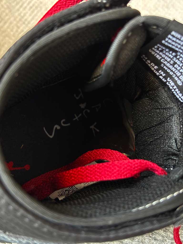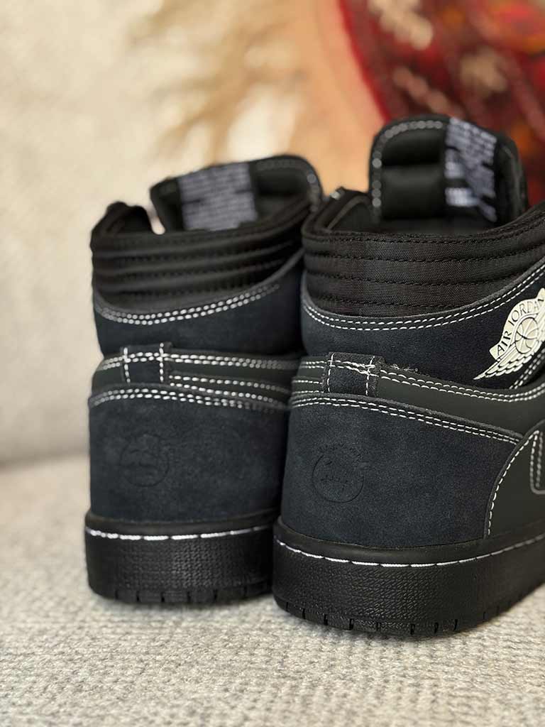کتونی نایک جردن وان بلک فانتوم Nike Air Jordan 1 High Travis Scott Black Phantom یک همکاری بسیار محبوب بین نایک و تراویس اسکات است.این کفش دارای رویه مشکی با دوخت سفید و لوگوی Swoosh معکوس در سمت جانبی می باشد.نام تجاری تراویس اسکات نیز روی پاشنه و کفی وجود دارد. قسمت پایینی کتونی نایک جردن وان بلک فانتوم Nike Air Jordan 1 High Travis Scott Black Phantom دارای یک زیره لاستیکی مشکی با ساختار دیواری دوخته شده و یک بالشتک هوای محصور در ان نصب شده است. این قابلیت سبب می شود که پا عرق نکند و گردش هوا به طور یکنواخت در کفش انجام شود و بوی بدی ندهد. رویه این کفش با طرح دوختی که بر روی آن به تصویر کشانده شده بسیار زیبا و با دوام به نظر می رسد.