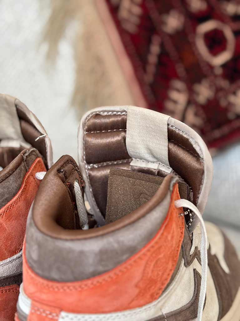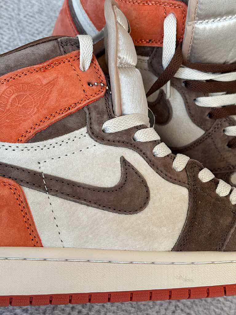اگه دنبال یه کتونی خوشرنگ و خاص میگردی که با هر استایل پاییزی یا زمستونی جور دربیاد، این Jordan 1 High همون چیزیه که لازم داری. حالا چرا این کتونی انقد خفنه. ترکیب رنگ قهوهای، کرم و نارنجی این کفش، یه ظاهر شیک و متفاوت بهت میده که هم برای روزمره عالیه، هم برای خاص بودن تو مهمونی ها این کفش از چرم و جیر باکیفیت ساخته شده که هم خوشفرمه و هم حسابی بادوامه زیرهش طوری طراحی شده که وقتی میپوشیش، انگار داری رو ابر راه میری. قهوهای و نارنجی یه ترکیب شیک و چشمگیره که استایلتو میترکونه. و لوگوی Jordan کنارش نشون میده که یه کتونی اصیل داری. این کتونی رو میتونی با شلوار جین بگ، اسلش یا حتی شلوار کتان ست کنی و مطمئن باش که همه نگاشون به سمتته. برای خیابون، کافه رفتن یا حتی قرارای دوستانه عالیه.