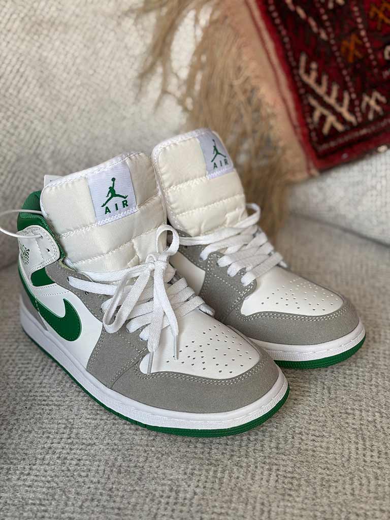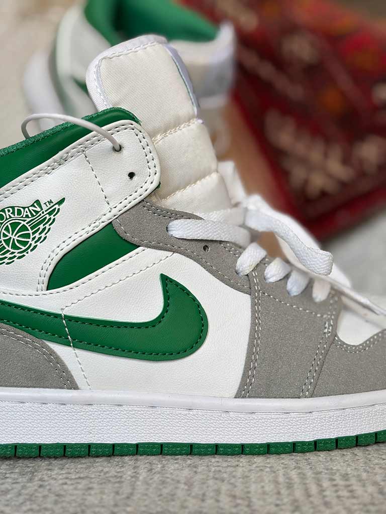 کفش نایک ایر جردن ۱ طوسی سبز مناسب برای استفاده روزمره و ست کردن با انواع لباس ها می باشد. نحوه بسته شدن بصورت بندی می باشد. همچنین مقاوم در برابر سایش , قابلیت گردش هوا , پد محافظت از پا , کاهش فشارهای وارده از مهمترین وپژگی این برند می باشد.